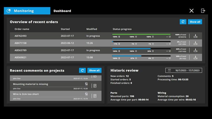 Het assistentiesysteem voor werknemers verhoogt de efficiëntie in de productie en vermindert de complexiteit van alle taken aanzienlijk. Door relevante informatie overzichtelijk te bundelen en aanvullende details eenvoudig oproepbaar te maken, bespaar je kostbare tijd die anders verloren gaat aan het doorzoeken van projectdocumentatie. Dit verkort de productietijden aanzienlijk. Tegelijkertijd kunnen nieuwe technici veel sneller worden opgeleid, dankzij de installatie- en bedradingsinstructies die automatisch worden gegenereerd uit de digital twin van de machine.